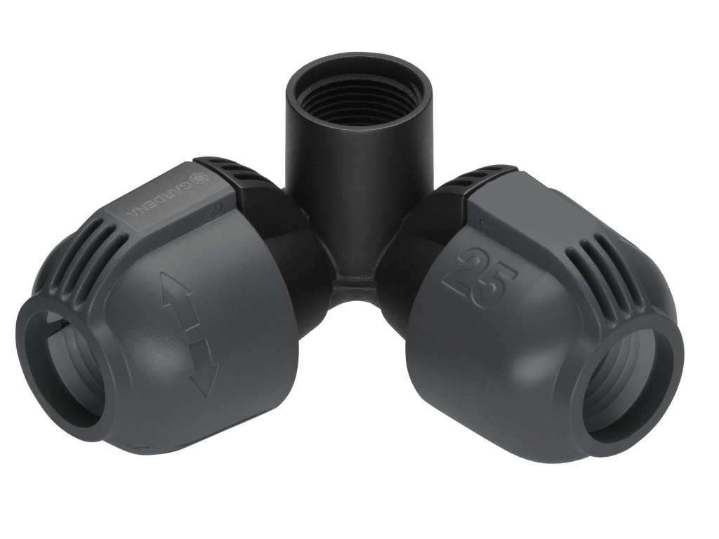 Rohová přípojka zadešťovače 25 mm x vnitřní závit 3/4"