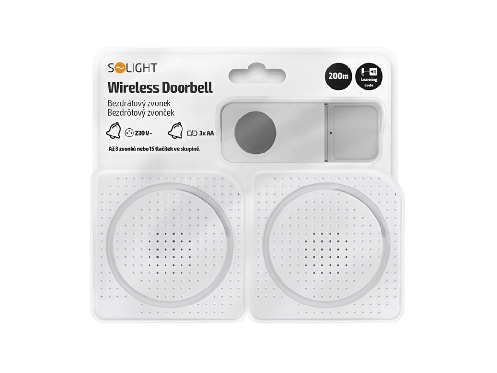 Solight 2x bezdrátový zvonek, do zásuvky + bateriový, 200m, bílý, learning code