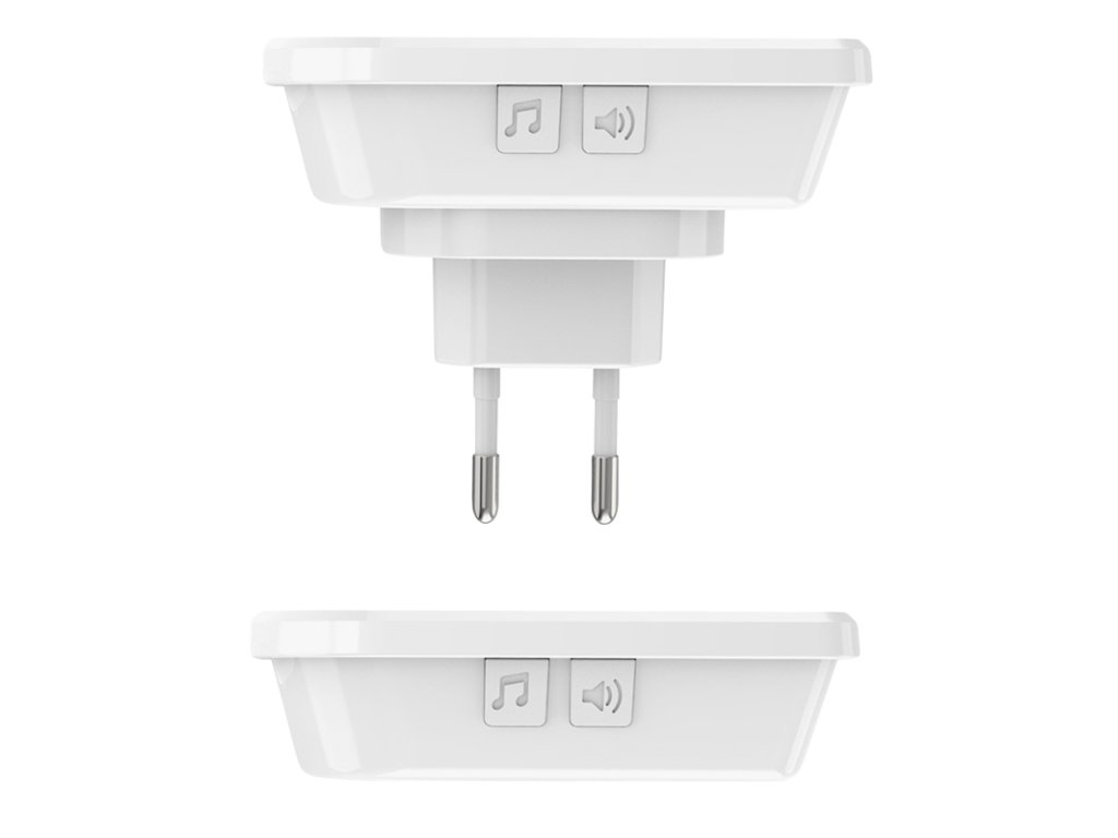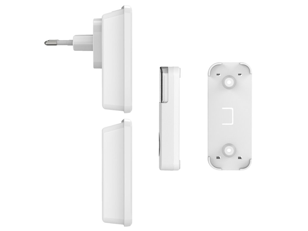 - jeden zvonek zapojený do zásuvky a druhý přenosný na baterie.