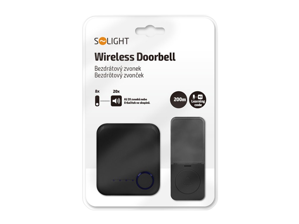 Solight bezdrátový zvonek, do zásuvky, 200m, černý, learning code
