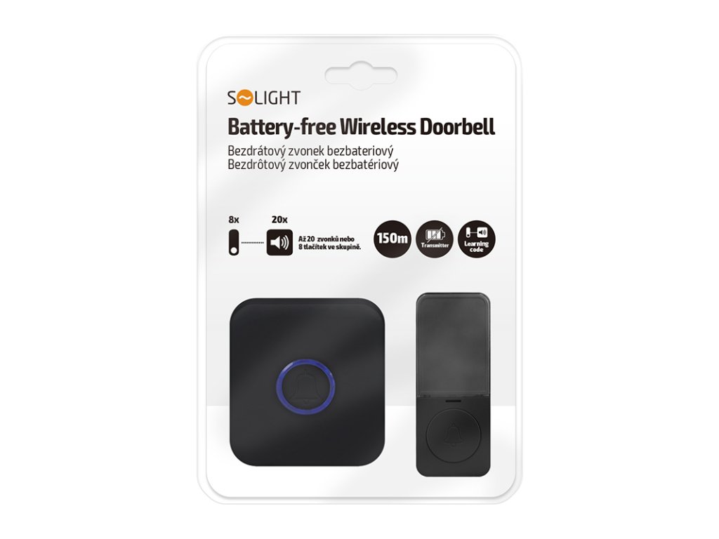 Solight bezdrátový zvonek bezbateriový, do zásuvky, 150m, černý, learning code