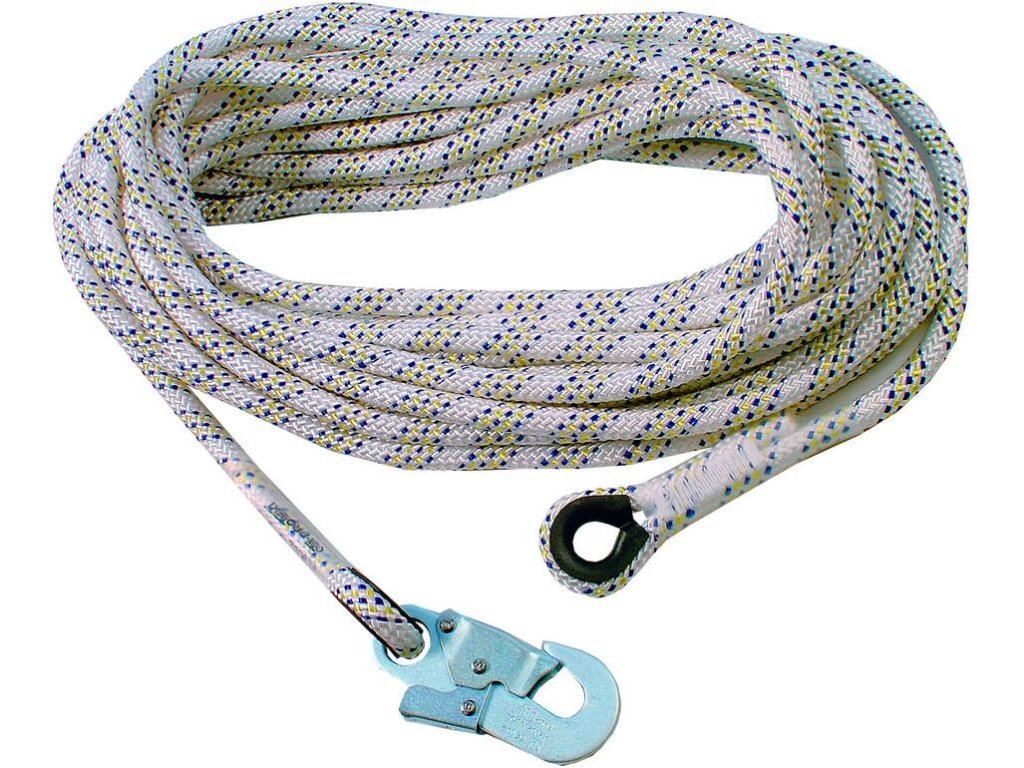 Pracovní lano AC 100 s karabinou. Lano je ukončeno našitými smyčkamiopatřenými obrubami. Součástí lana je ocelová karabina AZ 002 s otvorem 18 mm.
