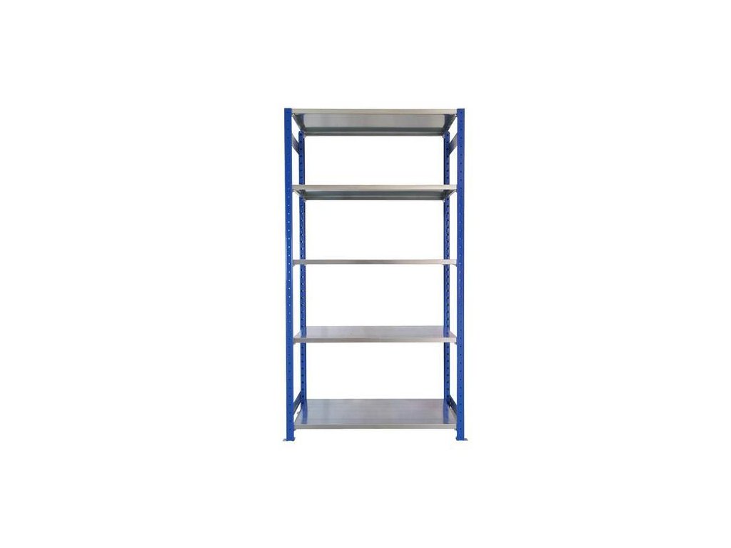 Kovový bezšroubový regál, základní, 200 x 100 x 60 cm, 130 kg/police, 5 polic, modrý