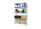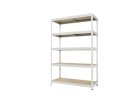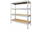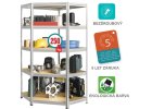 Robustný bezšroubový regál se čtyřmi MDF policemi. Nosnost jedné police 600 kg.