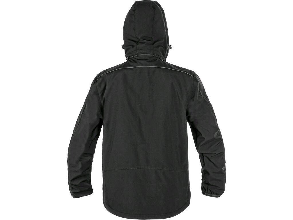 Pánská softshellová bunda, odolná proti vodě a větru, odepínací kapuce, pružné manžety v rukávech, stahování v dolním okraji, černé reflexní výpustky, fleecový límec i vnitřní strana bundy, TPU membrána, odolnost materiálu proti průniku vody (mimo oblast švů a mimo materiálu kolem kapes) 10 000 mm, paropropustnost 3 000 g/m2/24 hod. Na levém rukávu kapsička na zip, 2 spodní kapsy na zip, náprsní kapsa na zip.Doplňkové parametry