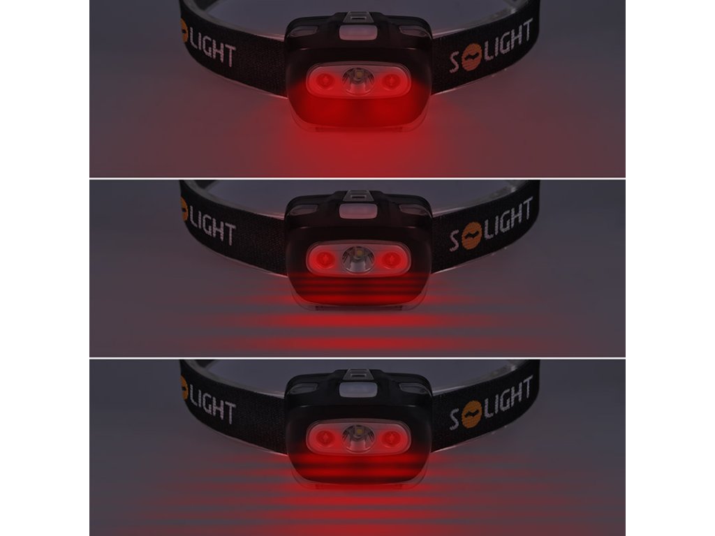Solight čelová LED svítilna, 3W + červené světlo, 3x AAA