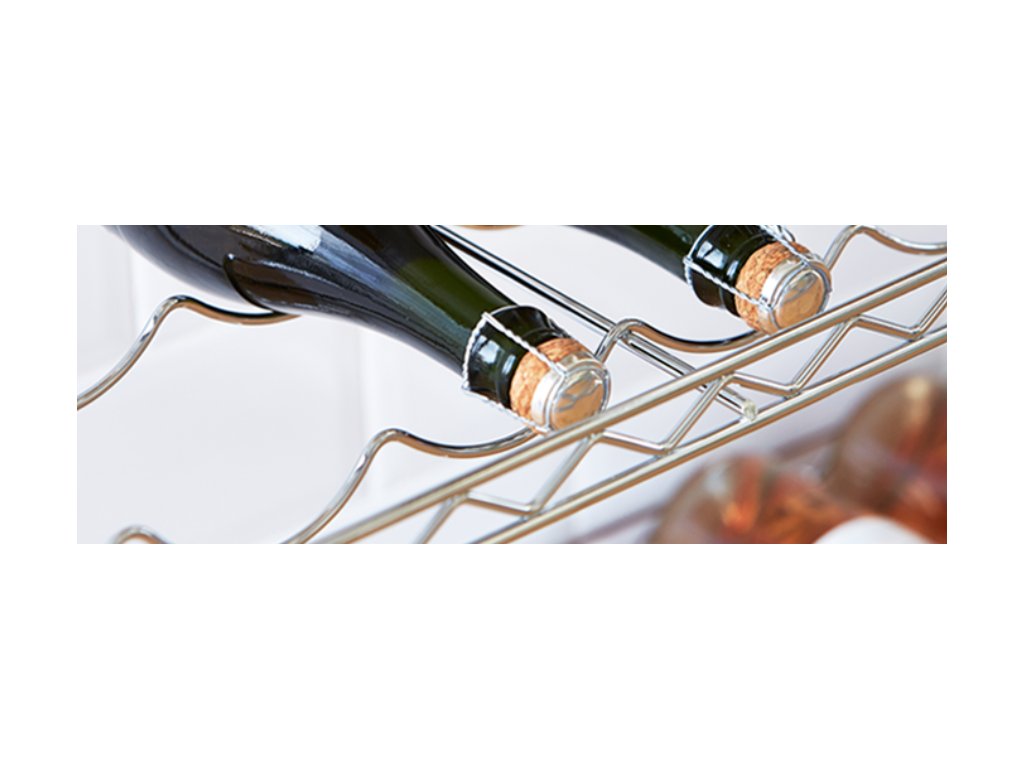 Potravinářský regál na víno Vhodný především jako regál na uložení vín pro restaurace s vinnými sklepy, vinařství a potravinářský průmysl, lze jej doporučit také jako prodejní regál pro vína a jiné lahve. Obecně se hodí i pro jiné na čistotu náročné provozy.