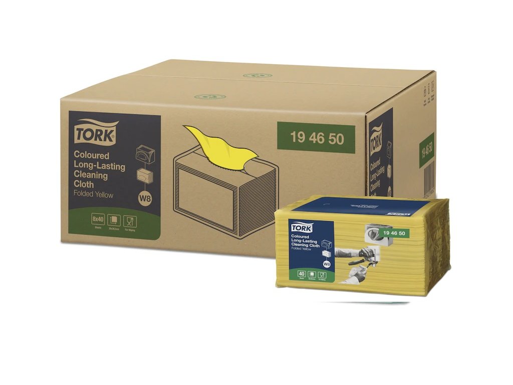 speciální žlutá utěrka Tork z netkané textilie ve skládané verzi pro úklid v umývárnách, 30x38cm Mimořádná speciální barevná utěrka Tork z netkané textilie ve skládané verzi pomáhá zabránit křížové kontaminaci. Žlutá utěrka určená na čištění povrchů v umývárnách. Barevný program TORK usnadňuje dodržování norem HACCP. Pevná utěrka s malým vlákněním. Pevný materiál znamená odolnost a opakované využití bez roztrhání. Jemný, textilní pocit, umožňuje precizní čištění. Může být použito za sucha i za mokra, s úklidovou chemií i s desinfekcí. Určeno především pro úklidové firmy, nemocnice, kancelářské budovy, hotely, restaurace a kuchyně.Certifikát ISEGA pro kontakt s potravinami.