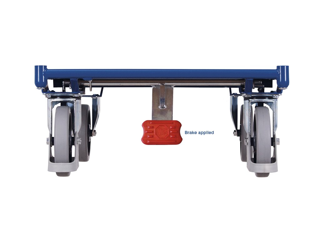 - Centrální brzda Easy Stop: Usnadňuje zablokování řídících koleček pomocí lehkého sešlápnutí pedálu (odblokování pak lehkým nadzvednutím pedálu).