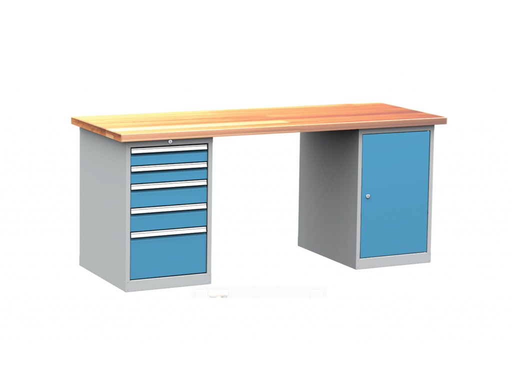 Dílenský stůl montovaný PROFI, 1 kontejner, 5 zásuvek, 85 x 200 x 75 cm