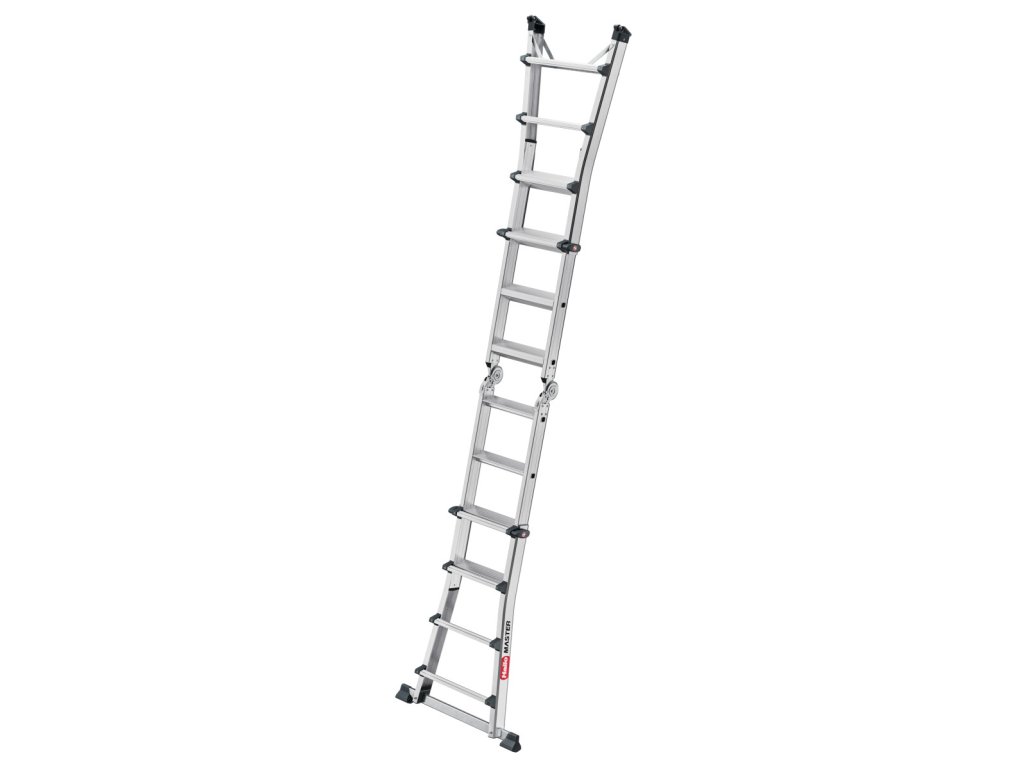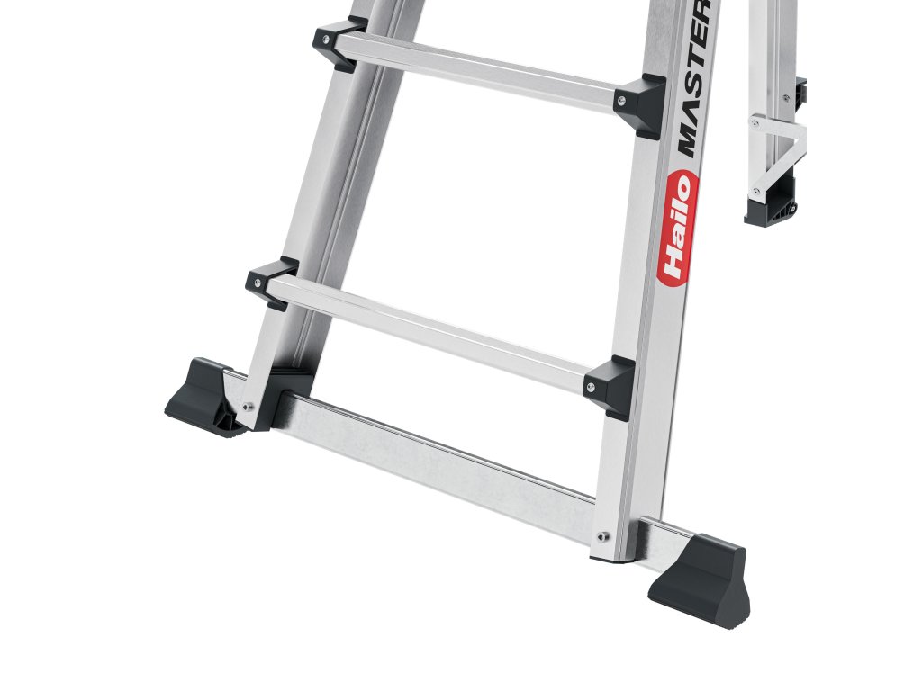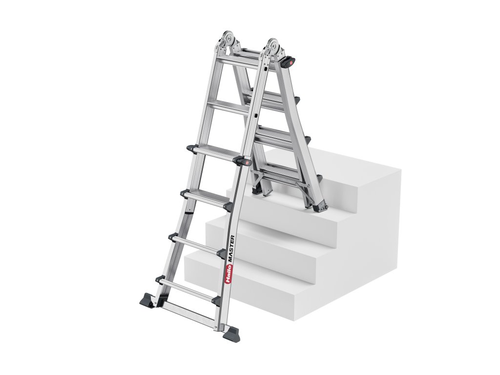 Hailo MASTER M100 je profesionální multifunkční hliníkový žebřík / štafle s teleskopickou funkcí. Díky robustní konstrukci a bezpečnostním kloubům umožňuje použití jako oboustranné štafle, příložný žebřík i práci na schodech. Široké nášlapy v pracovní části zajišťují ergonomický a bezpečný postoj i při delší práci.