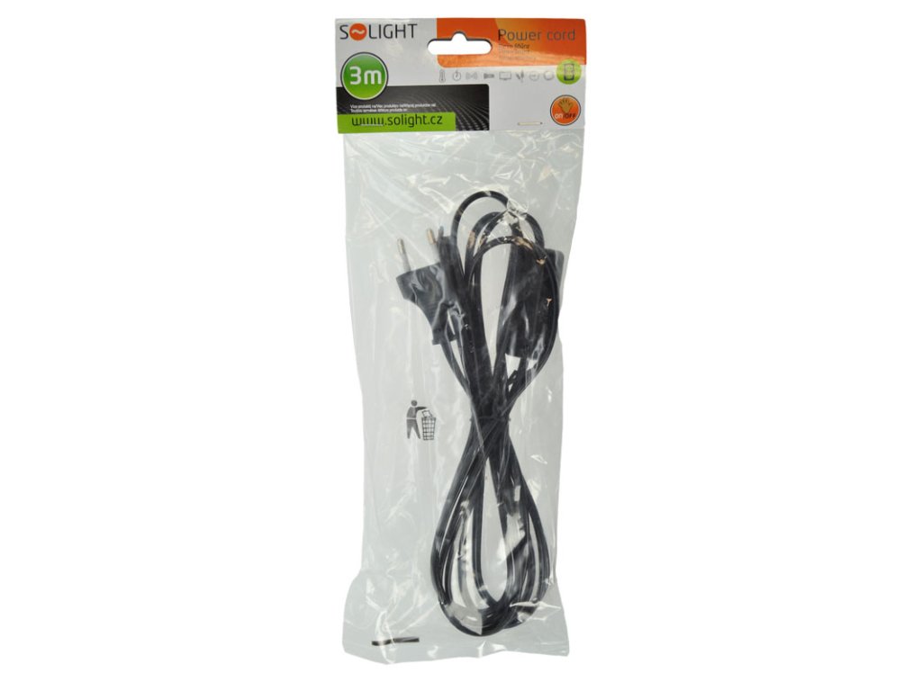 Solight flexo šňůra, 2x 0,75mm2, černá, plochá, vypínač, 3m