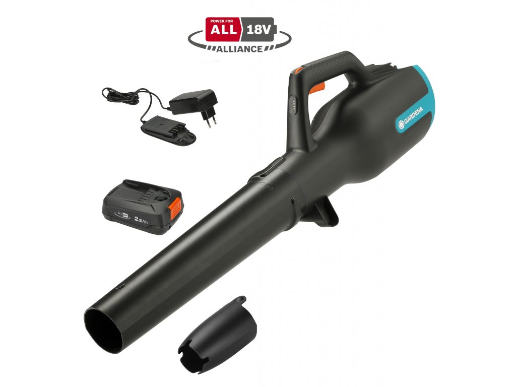 Foukač PowerJet 18V P4A - sada připravená k okamžitému použití značky GARDENA je napájen z akumulátoru a slouží k flexibilnímu, rychlému a efektivnímu úklidu vaší zahrady. Tento všestranný výrobek je ideální pro použití na zahradě a kolem domu. Tento moderní foukač zaujme nejen chytrým, funkčním designem, ale také pozoruhodně silným výkonem foukání. PowerJet rychle, účinně a efektivně odfoukne listy, menší větve nebo posečenou trávu. Díky inovativnímu designu a vysokému průtoku vzduchu bude vaše zahrada vypadat udržovaně a uklizeně v okamžiku. Foukač dosahuje maximálního objemu vzduchu 7,9 kubických metrů za minutu, takže nabízí skvělý výkon a umožňuje vám vyčistit plochu až 400 metrů čtverečních. Rychlost foukače je individuálně nastavitelná v závislosti na použití v zahradě. Díky nízké hmotnosti je práce s foukačem mimořádně pohodlná a snadná, a to i po celou dobu chodu v trvání 13 až 23 minut. Foukač je také dobře vyvážen, takže nedochází k únavě zápěstí a paží. Tomu přispívá i vynikající ergonomie výrobku. Jasně viditelný LED indikátor na zařízení zobrazuje aktuální úroveň nabití akumulátoru. Tato sada vám nabízí ještě více: obsahuje také další připojitelnou přesnou trysku. Tato tryska prodlužuje dosah foukače a umožňuje vám pracovat ještě přesněji na složitých místech, kde je třeba např. vymést kouty ve vaší zahradě a poskytuje větší flexibilitu při používání. Výkonný, kompaktní a praktický akumulátorový foukač GARDENA je proto ideální pro širokou škálu úklidových prací. Foukač PowerJet 18V P4A je dodáván jako sada připravená k okamžitému použití s nabíječkou a jedním akumulátorem 2,5 Ah 18V POWER FOR ALL. Aliance POWER FOR ALL je jednou z největších aliancí předních výrobců akumulátorů různých značek. Tyto akumulátory lze použít pro řadu zařízení pro péči o dům a zahradu - takže již nemusíte kupovat ke každému výrobku jeden akumulátor. Ušetříte peníze a zůstanete flexibilní! Vášeň poháněná značkou GARDENA - zahradní akumulátorové vybavení, které vám poskytuje svobodu při práci