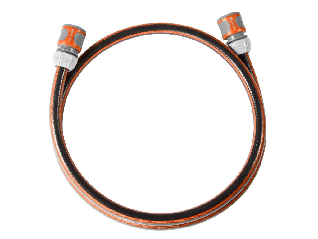 Pomocí GARDENA připojovací sady je možné propojit vozík/držák na hadici se zdrojem vody. Hadice se jednoduše připojí pomocí systémových dílů Original GARDENA, konkrétně: 2 rychlospojky (č.v. 915) a šroubení (č.v. 901). Hadice má standardní délku 150 cm a jedná se o hadici FLEX s průměrem 13 mm (1/2 ") a tlakem, při kterém dojde k prasknutí 25 barů. Pro snadné a rychlé napojení vozíku/držáku na hadici na zdroj vody.