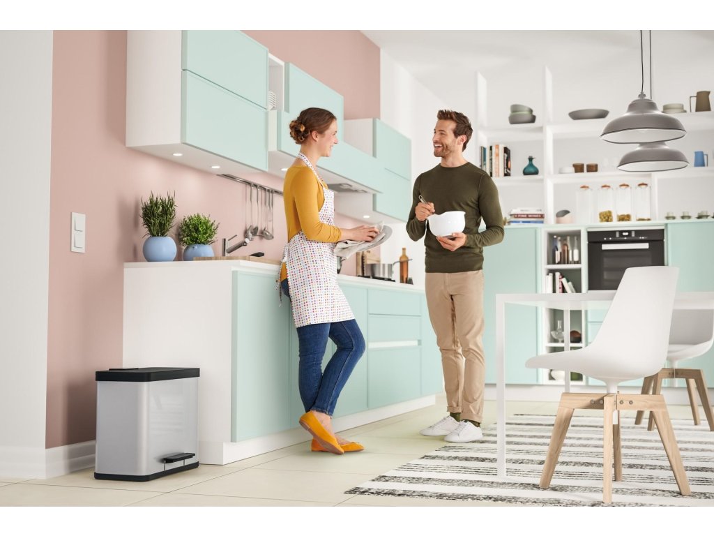 - materiál: tělo koše z ušlechtilé oceli / vnitřní nádoby, víko a pedál z odolného plastu