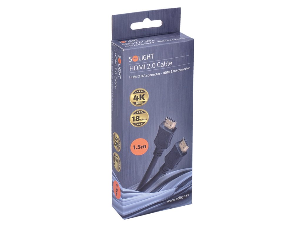 Solight HDMI kabel s Ethernetem, HDMI 2.0 A konektor - HDMI 2.0 A konektor, blistr, 1,5m