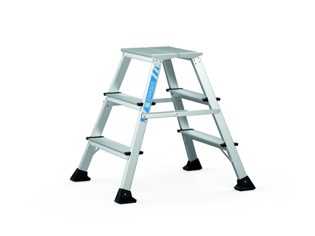 Schůdky ZARGES XLStep P s výškou plošiny 0,74 m jsou pohodlné a mimořádně stabilní. Díky kónickým nosným profilům (rozšíření o 9°) a velkým patkám lze schůdky bezpečně použít i na mřížových roštech. Eloxovaný hliník zajišťuje čisté ruce a dlouhou životnost.
