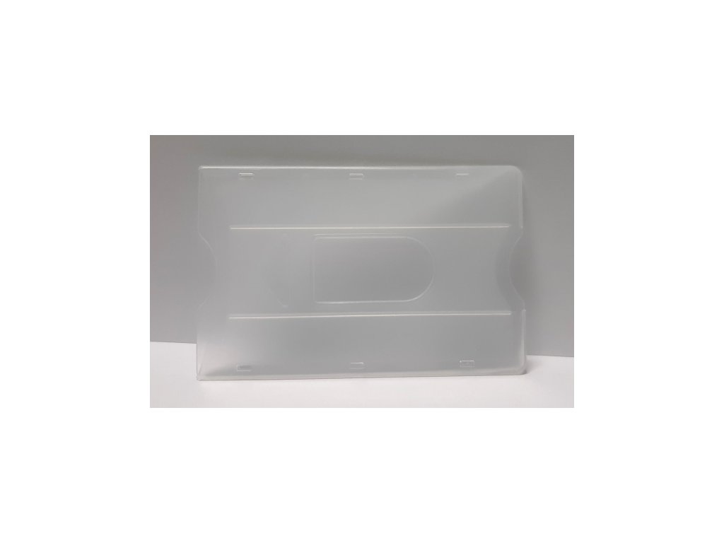 Tuhý plastový obal pro magnetické karty 54 x 86 mm – vodorovný, provedení z průhledného polomatného polyprophylenu. Výhodou obalu je výsek pro snadné čtení kódu. Má zaoblené hrany. Otvor a postranní výřez pro snadné vysunutí karty po celé straně. Obal chrání karty nejen proti mechanickému poškození, ale i vlivům UV záření, antistatické elektřiny a v omezené míře i magnetismu. Vnější velikost: výška 55 mm x šířka 87 mm x hloubka 2 mm.Doplňkové parametry