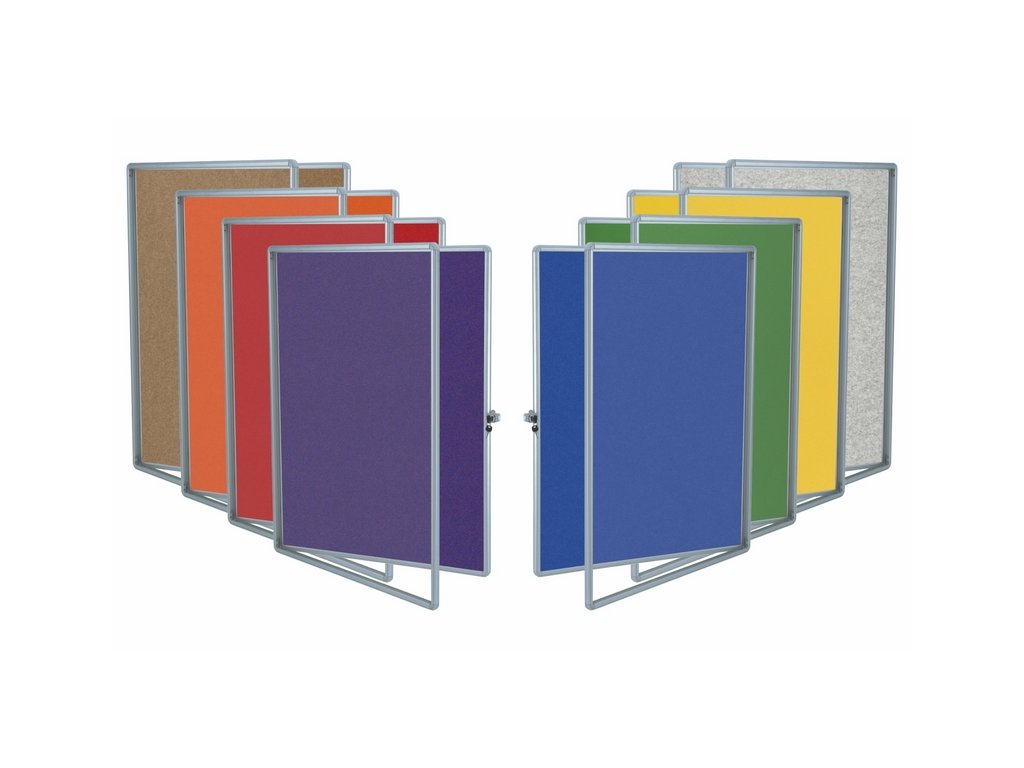 - Uzamykatelná vitrína složená z textilní nástěnky a skleněného víka vitríny.