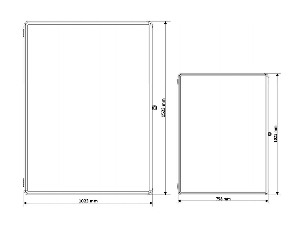 - Vitrína je opatřena kvalitním elegantním rámem z eloxovaného hliníkového profilu ve stříbrném odstínu s šedými plastovými rohy.