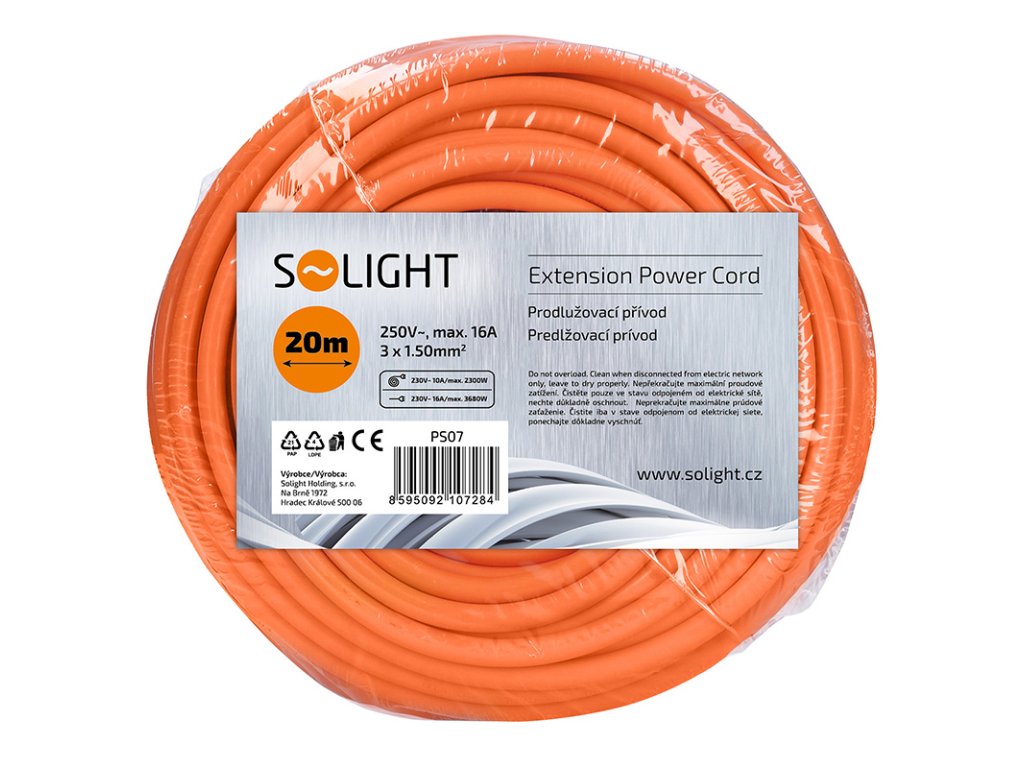 Solight prodlužovací přívod - spojka, 1 zásuvka, 20m, 3 x 1,5mm2, oranžová