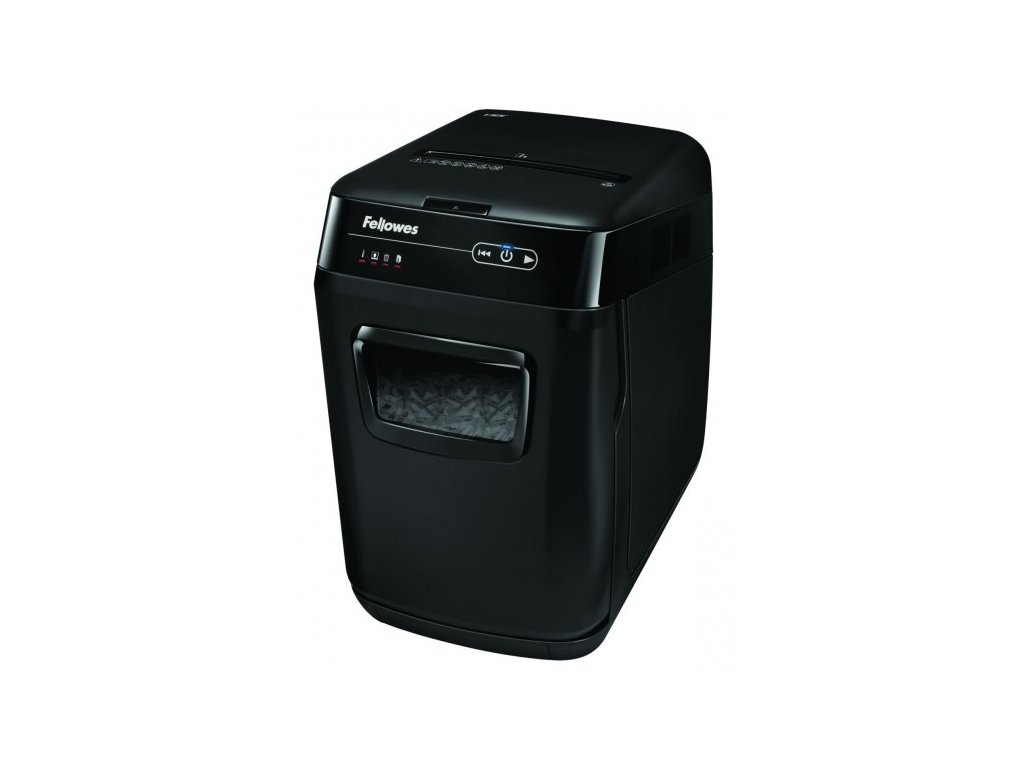 Skartování nikdy nebylo snazší. Revoluční novinka značky Fellowes, Vás o tom přesvědčí. Jen nalož, zapni a běž. Tento automatický skartovací stroj Vám umožní věnovat se prospěšnějším kancelářským činnostem, nežli je opakované postávání u běžného skartovače. Zařízení je schopno na jeden pracovní cyklus při automatickém podávání skartovat až 150 listů 70g papíru v křížovém řezu 4 x 38 mm. Skartovač je vybaven vstupní štěrbinou pro ruční podání až 8 listů papíru. Výkonný řezací mechanismus zpracuje při automatickém podávání sešívačkou sešité papíry (až 20 sešitých listů). Při manuálním podávání i kreditní karty, CD/DVD. Ovládání je zajištěno prostřednictvím dotykového panelu s LED podsvětlením. Samozřejmostí je indikace přehřátí, otevřeného zásobníku, plného odpadního koše i případného kolizního stavu (pokud je na vstupu nežádoucí obsah). Délka nepřetržitého pracovního cyklu 12 min. Automatický ochranný systém proti přehřátí. Řezné nože ze speciální tvrzené oceli, silný motor a kovové převodové součásti předurčují AutoMax pro dlouhodobé a bezproblémové využití. Předurčen primárně pro "open office". Funkce " SilentShred " výrazně minimalizuje zatížení hlukem při skartování. V případě nečinnosti delší než 2 min se stroj automaticky vypne - " Sleep MODE ", šetří tím odběr el. energie. Objem koše 32 litrů, vysouvací odpadová nádoba uvnitř s odolným papírovým košem, pro snadnou manipulaci. SilentShred™ - funkce, která minimalizuje zatížení hlukem při skartování. Sleep MODE™ - po 2 minutách nečinnosti vypne stroj. Auto-Reverse™ - zajistí přerušení skartace a zpětný chod při záseku. Accufeed™ - automatické podávání papíru pro střední a vyšší zátěž, šetří čas strávený podáváním papíru.Doplňkové parametry