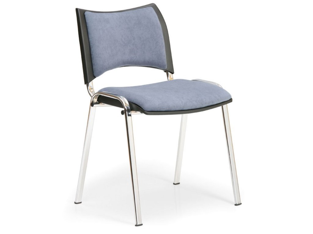 Stohovatelá čalouněná konferenční židle o nostnosti 100 kg. Konstrukce z oválných ocelových trubek, povrchová úprava pochromováním, nohy jsou opatřeny černými plastovými koncovkami. Sedák i opěrák čalouněný do mikroplyše (100% polyester), gramáž 280 g/m2, plastové díly z černého elastického plastu.