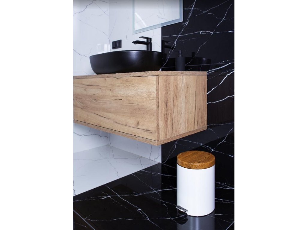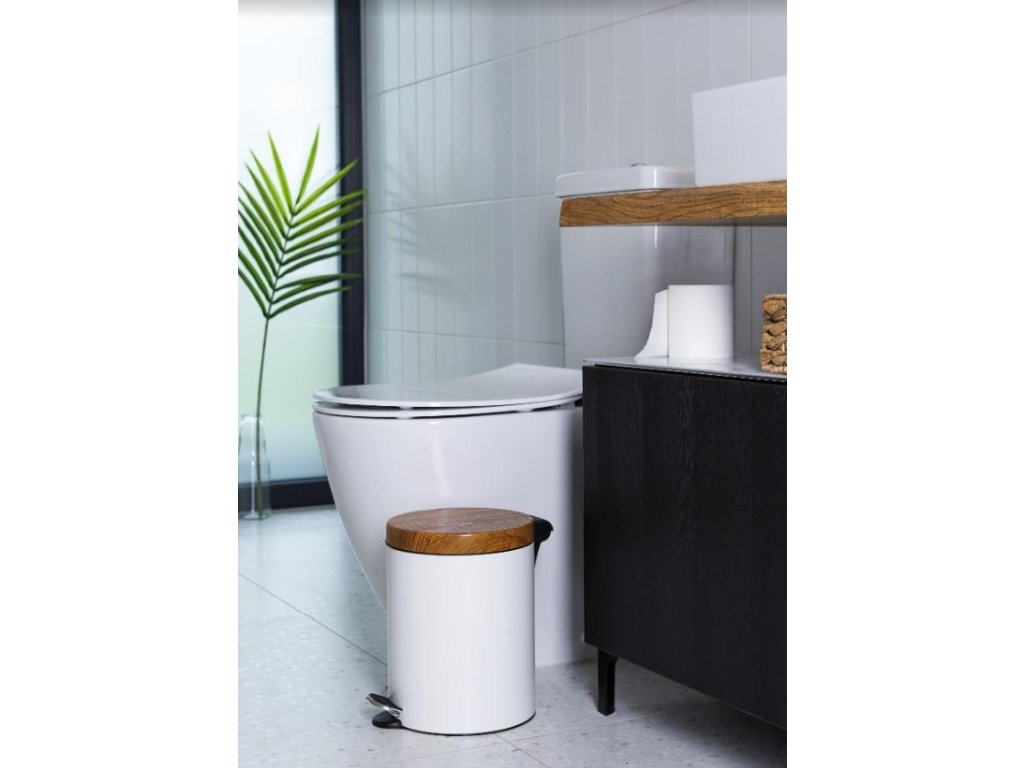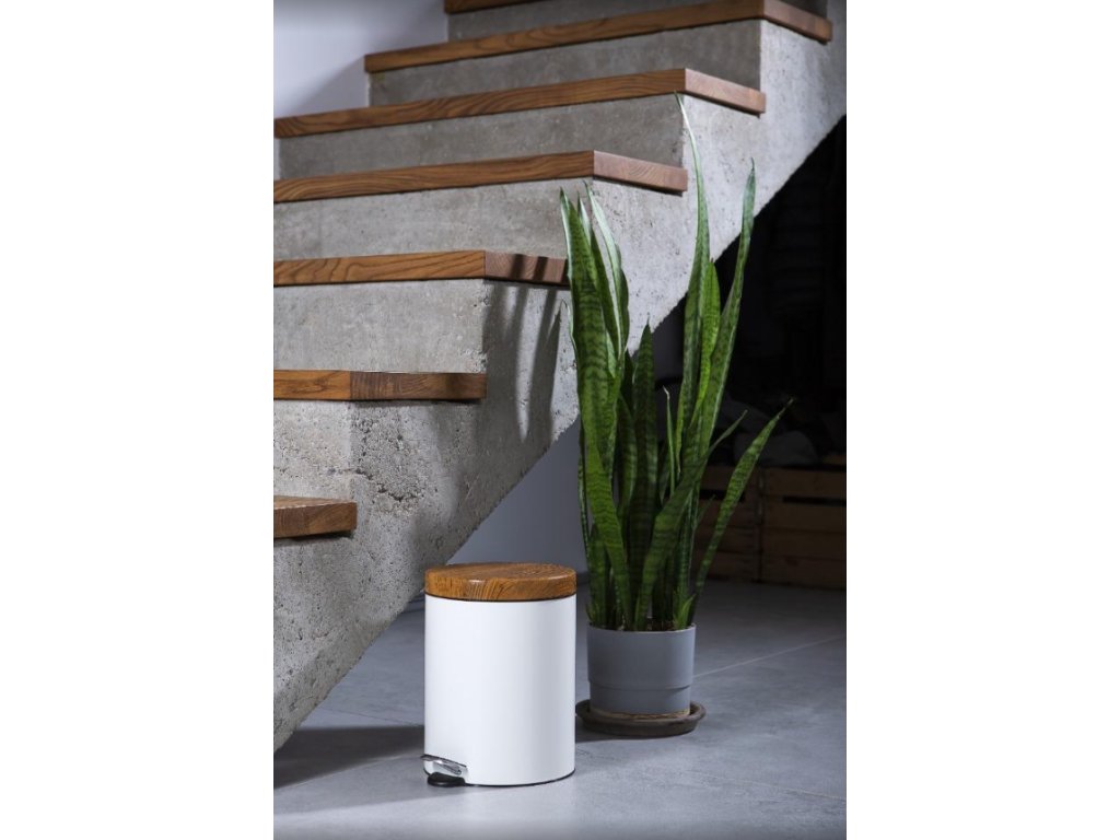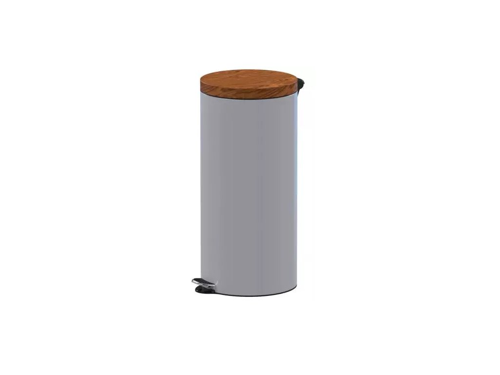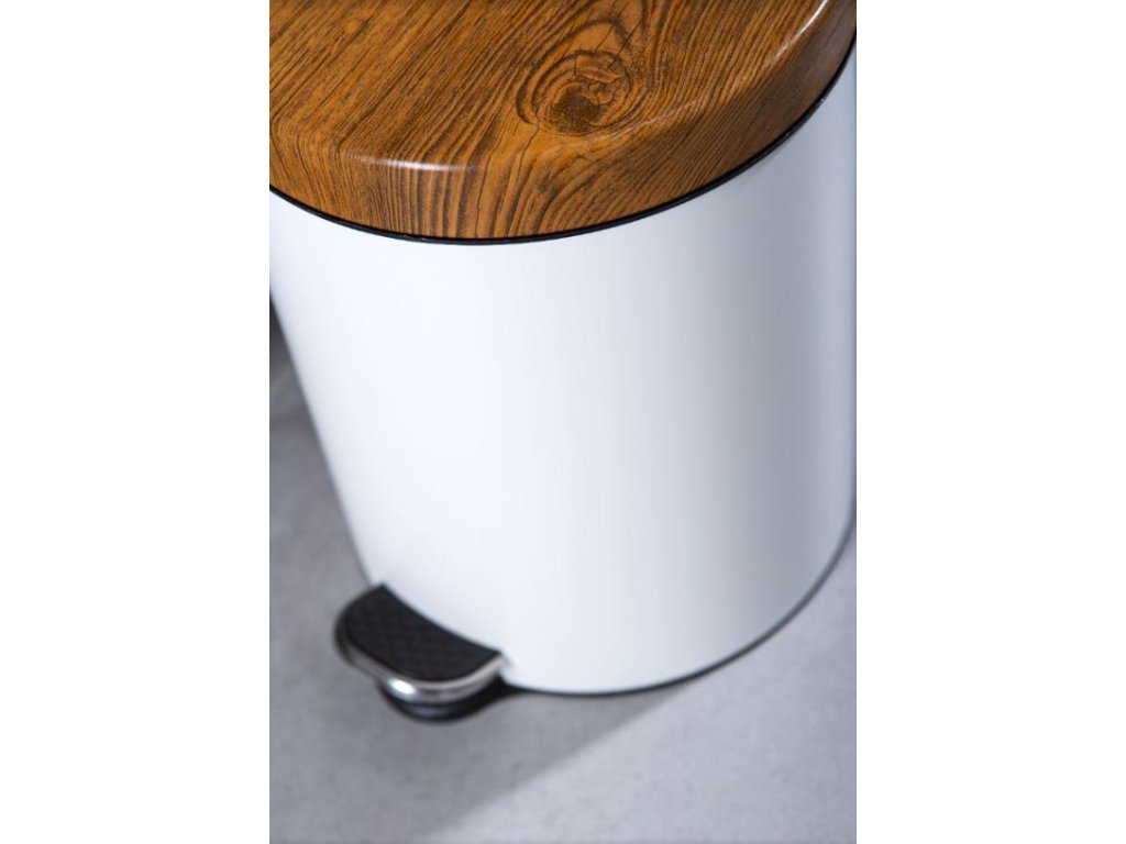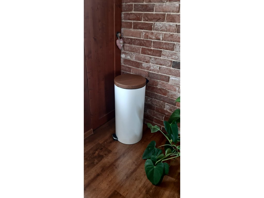 Nášlapný kovový koš ALDA s dřevěným víkem, 30 litrů, bílý lak