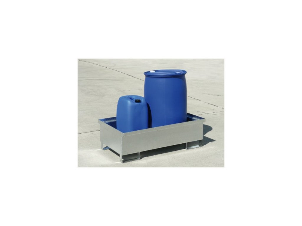 Vhodné pro skladování kapalin ohrožujících vodu a životní prostředí dle odpovídajících předpisů.Záchytná vana v robustním provedení z ocelového plechu tloušťky 3 mm, konstrukce těsně svařovaná, zesílený horní okra, kovové nožky.