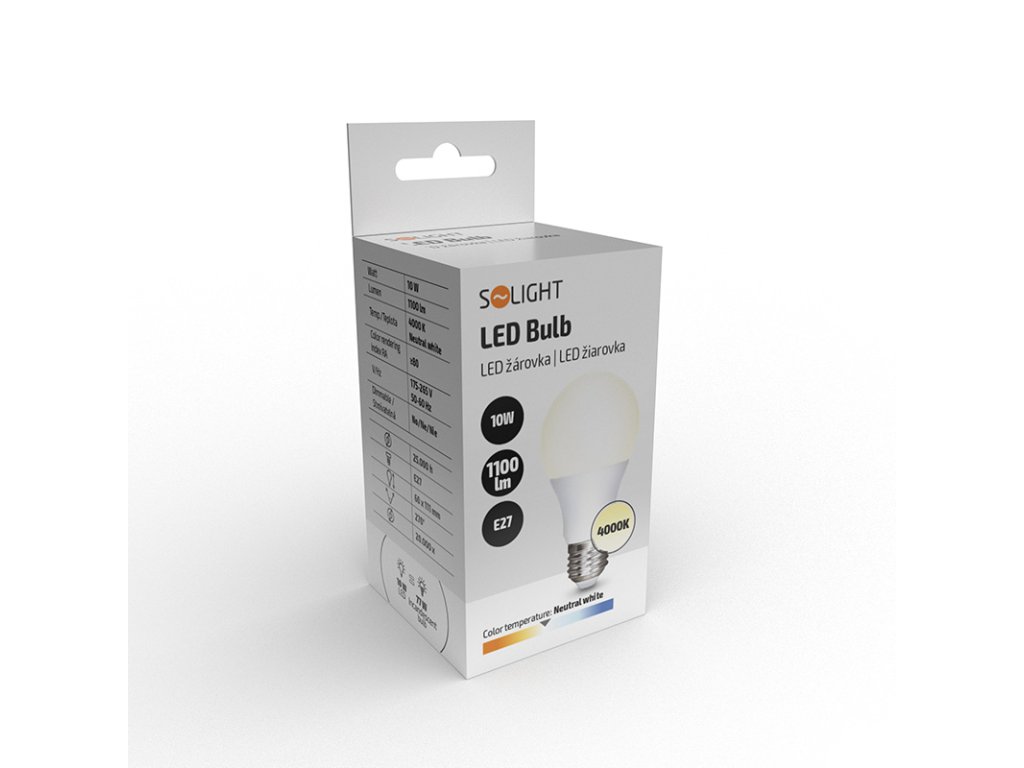 Solight LED žárovka, klasický tvar, 10W, E27, 4000K, 270°, 1100lm