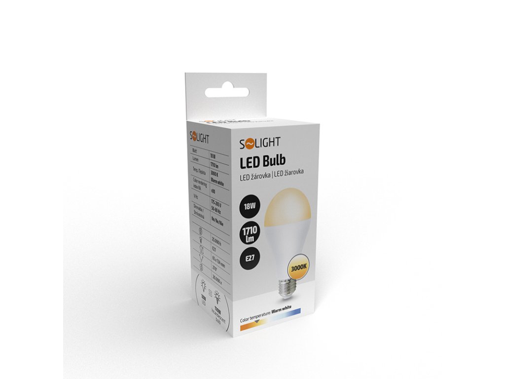 Solight LED žárovka, klasický tvar, 18W, E27, 3000K, 270°, 1710lm