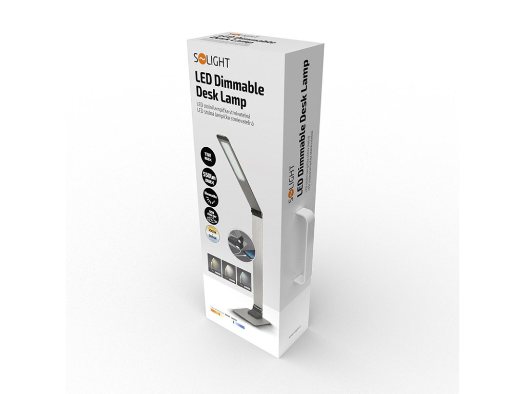 Solight LED stolní lampička stmívatelná, 11W, změna chromatičnosti, broušený hliník, stříbrná