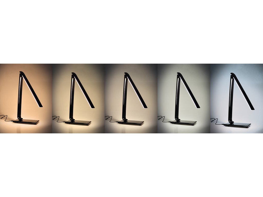 Solight LED stolní lampička stmívatelná, 12W, volba teploty světla, USB, černý lesk