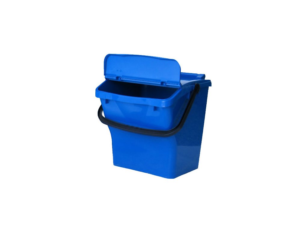 Odolná nádoba na tříděný odpad z polypropylenu v modré barvě, určená zejména pro sběr papíru. Ideální do kanceláří, škol, nemocnic i domácností. Díky stohovatelné konstrukci je prostorově úsporná a díky víku s klapkou umožňuje snadné plnění i při uložení nádob na sobě.