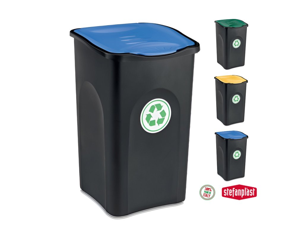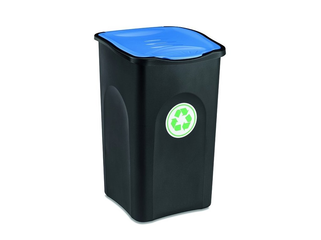 Praktický a prostorný koš na tříděný odpad s barevně odlišeným modrým víkem pro snadnou identifikaci frakce. Vyrobený z recyklovaného polypropylenu, vhodný do domácností, garáží, dílen i kanceláří. Součástí je samolepka se symbolem recyklace.