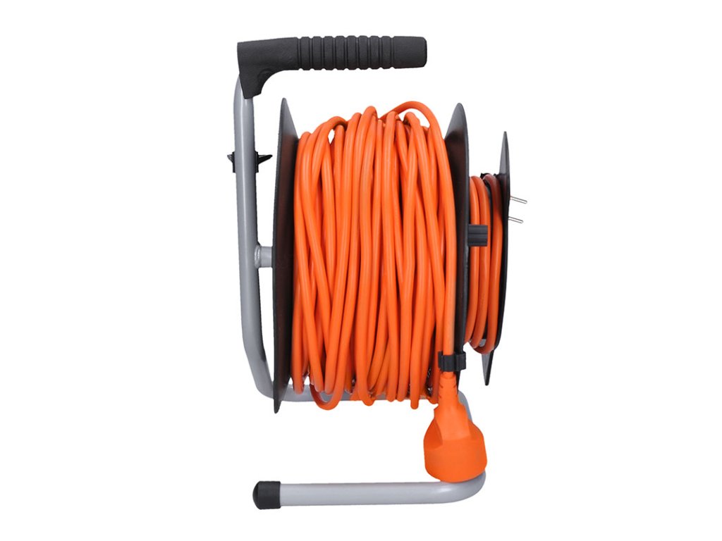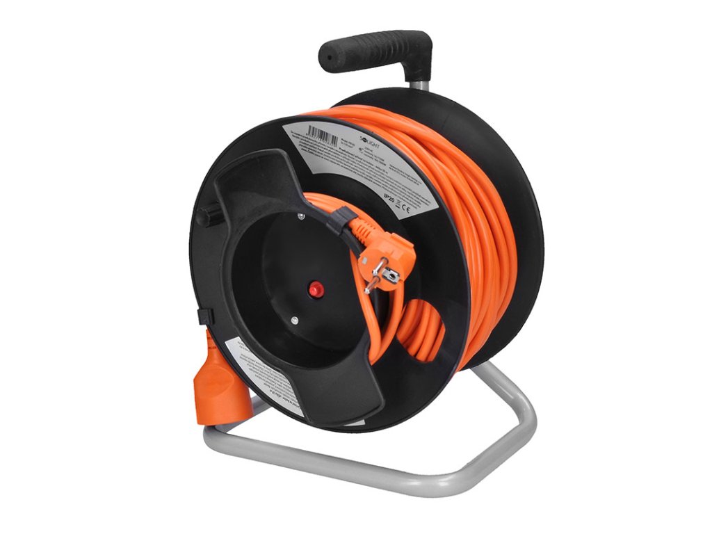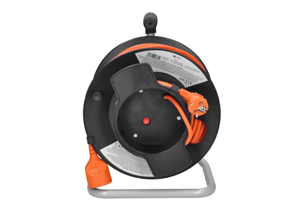 Solight prodlužovací přívod na bubnu, 1 zásuvka, 50m, oranžový kabel, 3x 1,5mm2