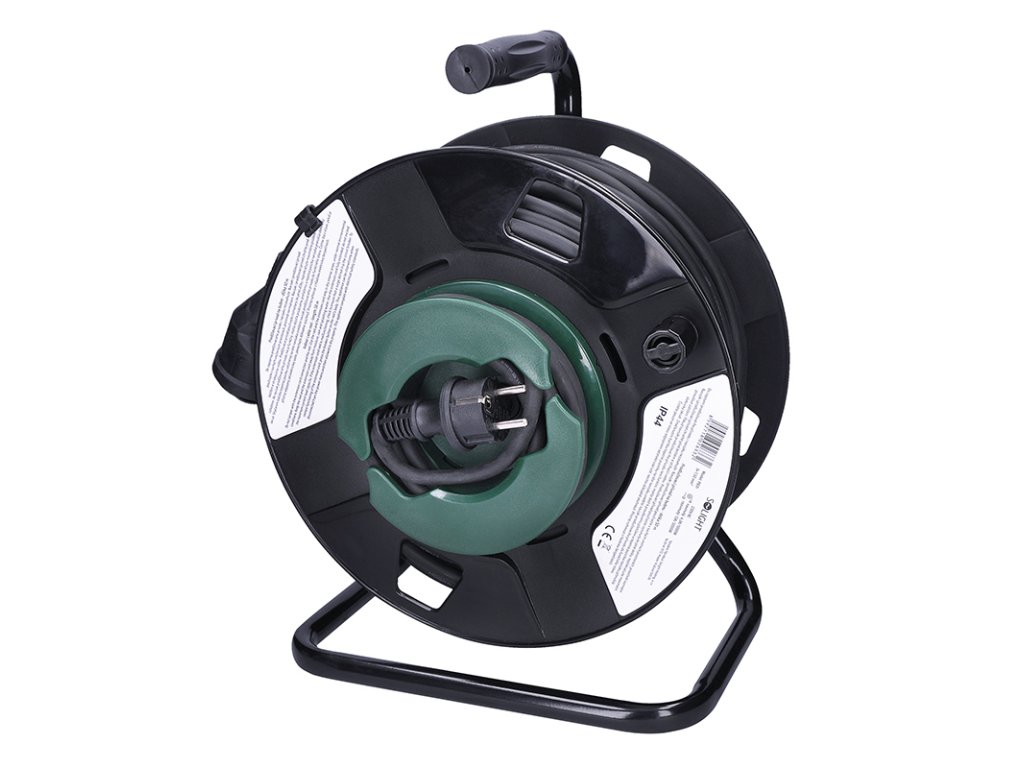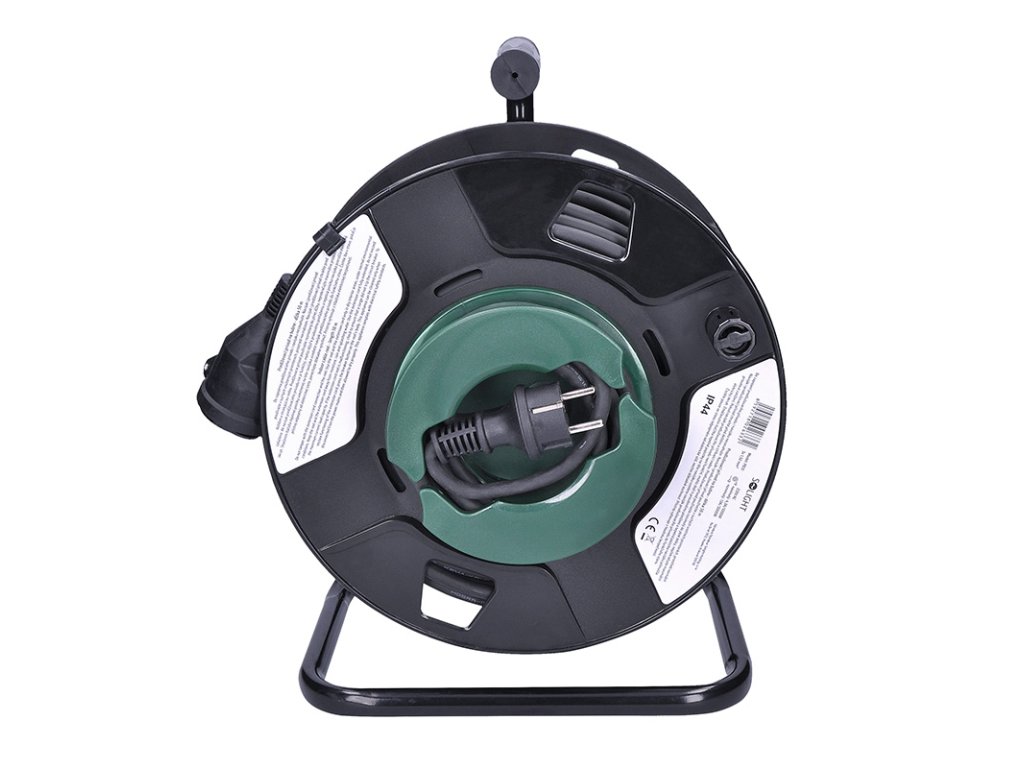 Solight prodlužovací přívod na bubnu, 1 zásuvka, venkovní, 50m gumový kabel, 3x 1,5mm2, IP44