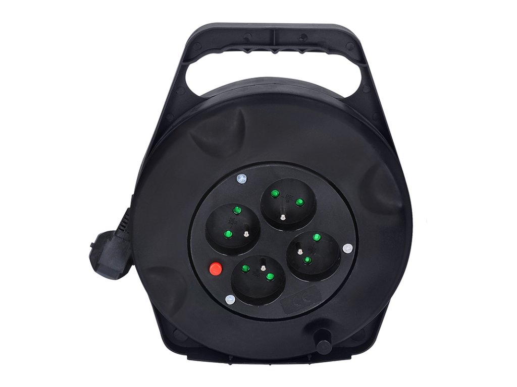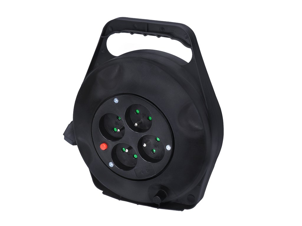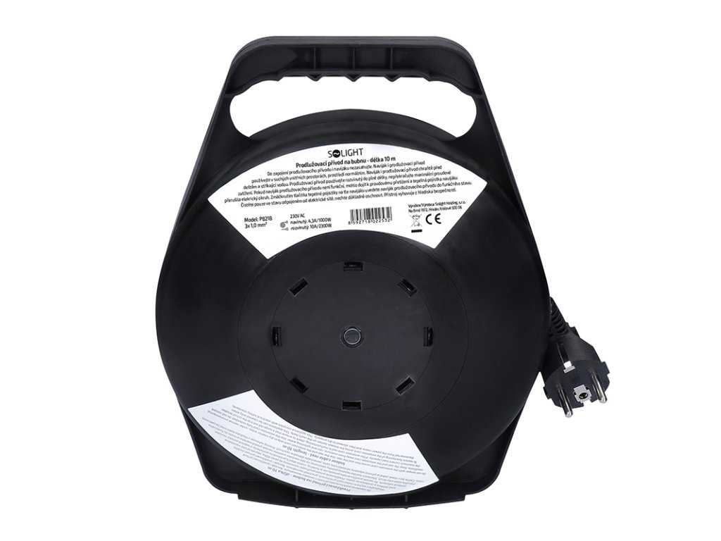 Solight prodlužovací přívod na bubnu, 4 zásuvky, 10m, černý kabel, 3x 1,0mm2