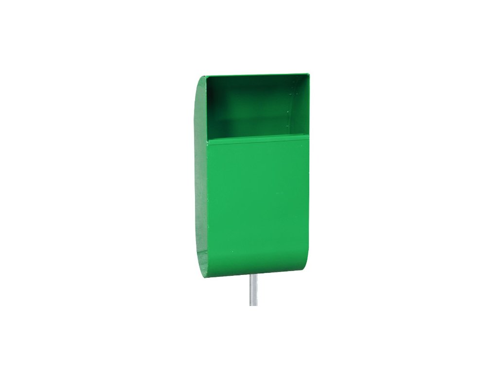 Venkovní odpadkový koš typu „vajíčko“ je vhodný k instalaci do parků, na hřiště nebo do zahrad. Má svařovanou ocelovou konstrukci s povrchovou úpravou komaxit v zelené barvě. Součástí je vyjímatelný popelník, který lze zavěsit dovnitř i vně nádoby. Koš je určen k zavěšení na sloupek o průměru 60 mm (není součástí dodávky).
