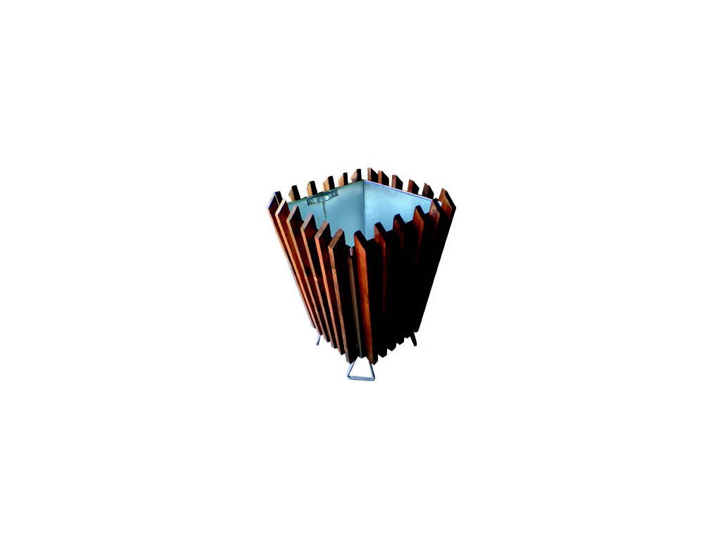 Odpadkový koš s dřevěnými latěmi určený pro veřejná prostranství, jako jsou parky, hřiště nebo zahrady. Stabilní kovový podstavec na pevných drátěných nožkách zajišťuje odolnost vůči povětrnostním podmínkám. Dřevěné latě jsou ošetřeny speciálním lakem pro venkovní použití. Koš je vybaven výjimatelnou pozinkovanou vložkou pro snadné vyprazdňování.