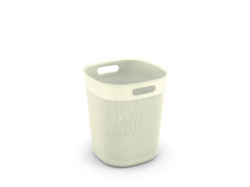 Velmi zdařilý koš v béžové barvě je možné použít nejen do koupelen, ale i do kanceláří a pokojů. Vhodný je také na ukládání drobných věcí. Má dva úchyty pro lepší manipulaci. Svým designem připomíná proutěný koš. Na ohmat je příjemný a konstrukce je pevná.