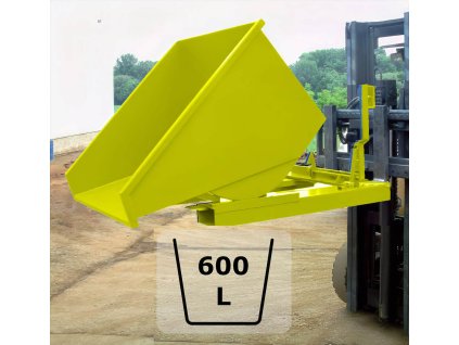 Výklopný kontejner o objemu 600 litrů, varianta základní (bez výpustného kohoutu), barva žlutá, délka × šířka × výška: 1560x1070x820 mm