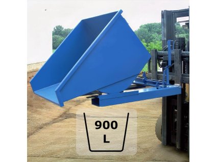 Výklopný kontejner o objemu 900 litrů, varianta základní (bez výpustného kohoutu), barva modrá, délka × šířka × výška: 1560x1570x820 mm