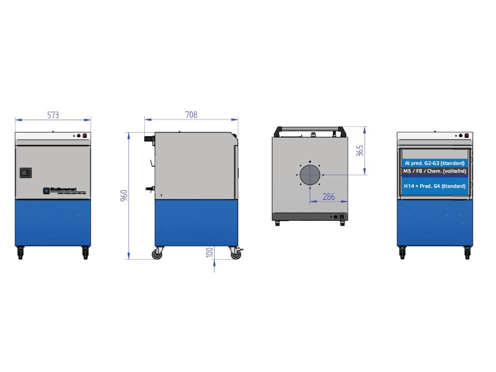 | Mechanický předfiltr | F8 | Kazetový, jednorázový | Jemné mech. cástice, prodlužuje životnost HEPA filtru | za příplatek |