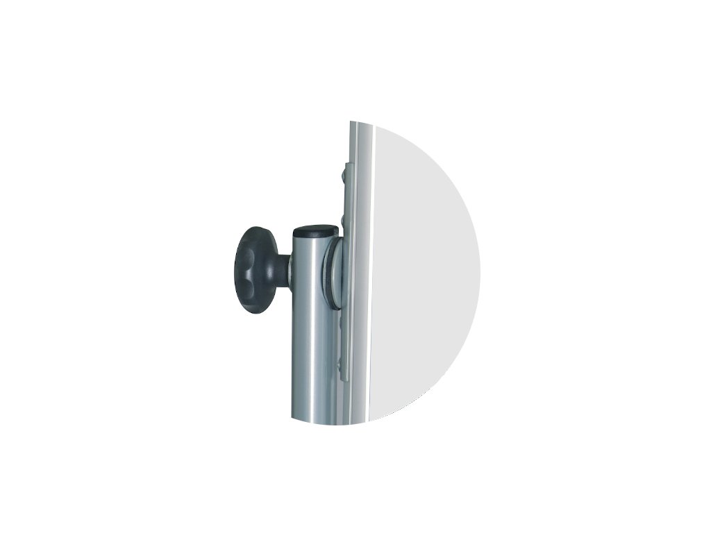 - Velmi kvalitně zpracovaný pevný stojan z oválného ocelového profilu ve stříbrné barvě designově sjednocený s tabulí.