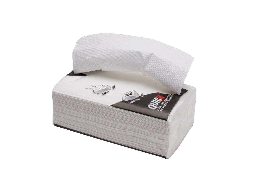 Multifunkční papírové ručníky skládané CELTEX Infiore Quick 2400ks, extra velký rozměr 25x30cm CELTEX Infiore Quick je nový systém nahrazující až 3 kuchyňské utěrky. Nový systém, který je určený nejen pro profesionální kuchyně, ale i do kancelářských provozů, kde není prostor pro zásobník. Má minimalistický rafinovaný design a inovativní dávkovací systém po jednotlivých listech, který optimalizuje čas a není potřeba žádný zásobník. Každý balíček je zvlášť v igelitovém obalu a dávkuje se jako kosmetické kapesníky. Skládané listy nahrazují objemné role díky inovativnímu balení maxi, které zaručuje vysoký výkon a nízkou spotřebu.