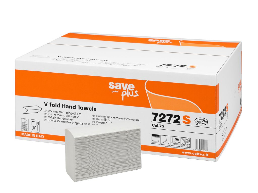 Ručník papírový skládaný CELTEX S-Plus V, 3000ks, 21,5x21cm.Dvouvrstvé papírové ručníky CELTEX S-Plus V, skládané. Nejlepší poměr mezi cenou a kvalitou. Dobré funkční parametry. Ekonomická varianta. Vyrobeno bez použití chlóru a bělidel, neznečišťující a nezatěžující odpady.