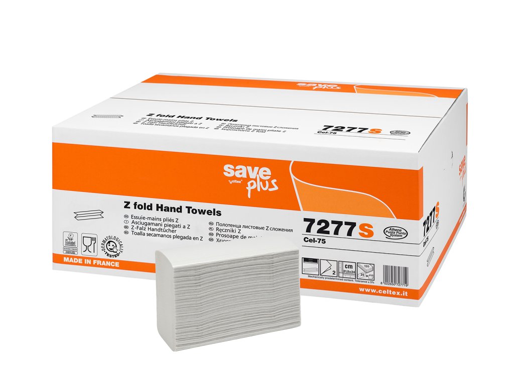 Ručníky papírové skládané CELTEX S-Plus Z, 3000ks, rozměr 21,5x24cm, tříkrát skládaný Dvouvrstvé papírové ručníky CELTEX S-Plus "Z" určené pro úzké zásobníky, ideální poměr mezi cenou a kvalitou. Vyrobeno bez použití chlóru a bělidel, neznečišťující a nezatěžující odpady.Doplňkové parametry