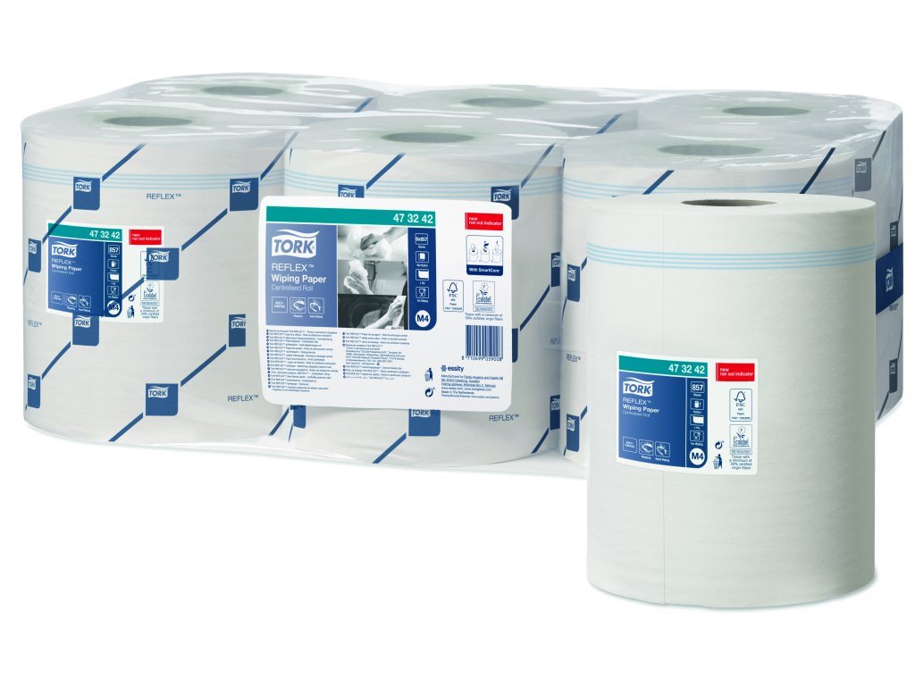 papírové ručníky v roli Tork se středovým odvíjením, výška 20cm, délka utržku 35cm, 857 útržků Používání papírových ručníků v roli Tork Reflex je rychlá, efektivní, spolehlivá a ekonomická cesta, jak zlepšit hygienu rukou. Systém dávkování po jednotlivých útržcích snižuje spotřebu až o 37%. Široká nabídka papírových ručníků v roli zahrnuje ručníky s velkou absorpcí, které snižují objem odpadu a dělají z mytí rukou příjemný zážitek, navíc rychlý a efektivní. Zásobníky dávkují v jeden okamžik vždy jen tolik, kolik potřebujete, tím se redukuje spotřeba a i náklady na údržbu a doplňování zásobníků jsou nižší. Novinka - na posledních čyřech metrech je kontrolní ukazatel Tork Run Out s modrým indikátorem, což jsou čáry, který Vás upozorní, že je zásobník téměř prázdný.Používání papírových ručníků Tork snižuje náklady na používání. Univerzální ručník v roli TORK na utírání rukou lze použít i pro různé pracovní operace. Ideální pro místa s velkou spotřebou. Odvíjení ze středu - jednoduše a rychle si vezmete, kolik potřebujete.Doplňkové parametry