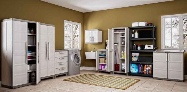 Elegantní plastová skříň se 4 policemi, každá o nosnosti 15 kg.